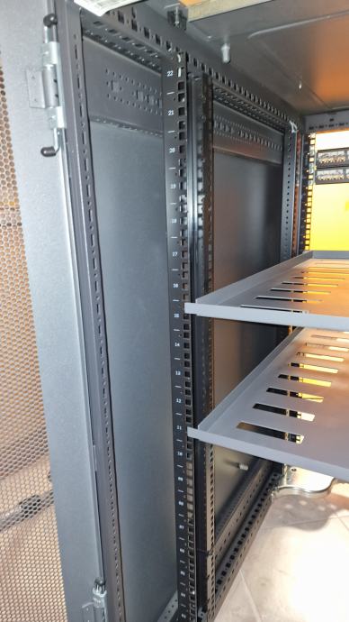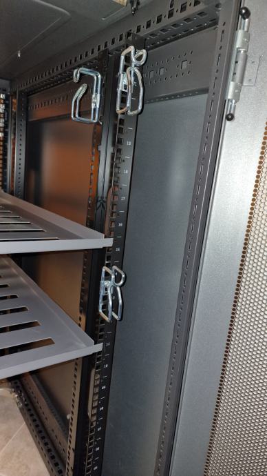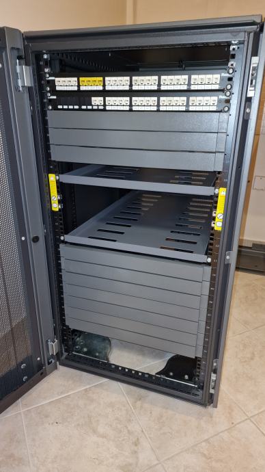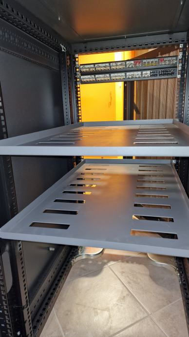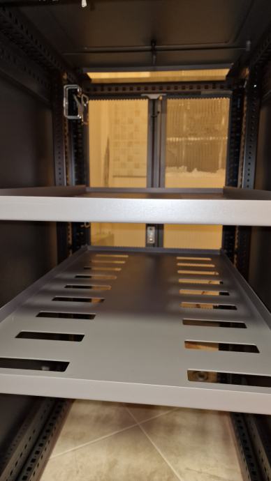 Uz kabinet besplatno dajem slijepe poklopce, 3 police, grounding kit, patch paneli itd. sve što je na slikama.
