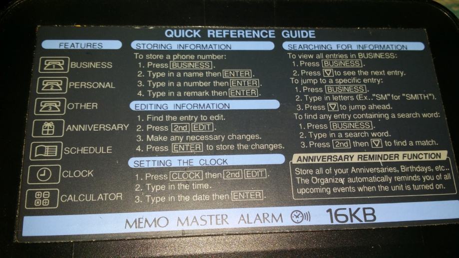 Sharp memo master alarm 16KB digital diary