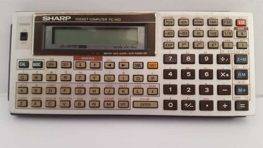 SHARP Pocket computer PC-1403, kalkulator, digitron potpuno ispravan, s uputstvom na njemačkom jeziku, prvi vlasnik.