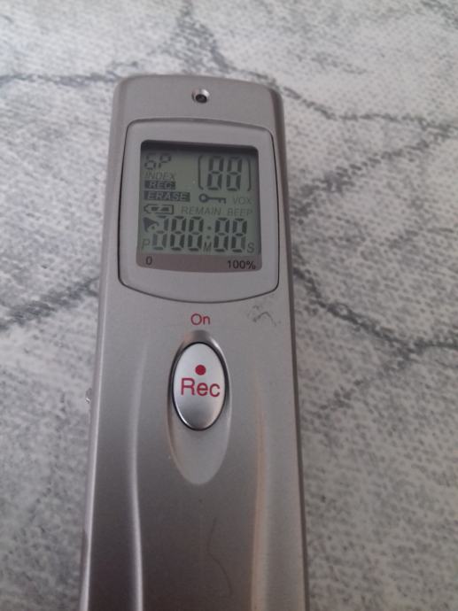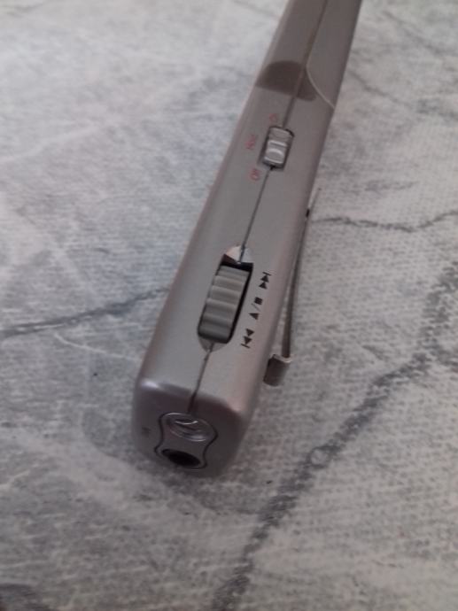 PRILIKA ,snimać razgovora + slušalice ,200 min.neprekidnog -- snimanja--neprimjetnog razgovora pjesama i sl, radi na baterije, aparat po želji briše sve snimljeno i snima novo iz početka ,dimenzije: duž=12cm , širina = 2,3 cm , debljina = 1,5cm , vidi slike! mt(1-rohe)
