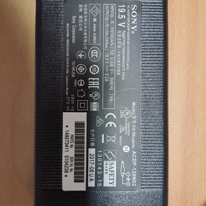 Sony adapter 19,5V=6,2A za televizor Sony Bravia KD-49XE7077, potpuno novi. Kupio misleći da je bio kvar u njemu, a nije,