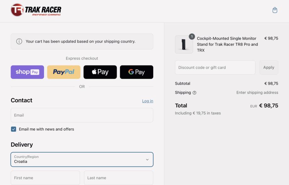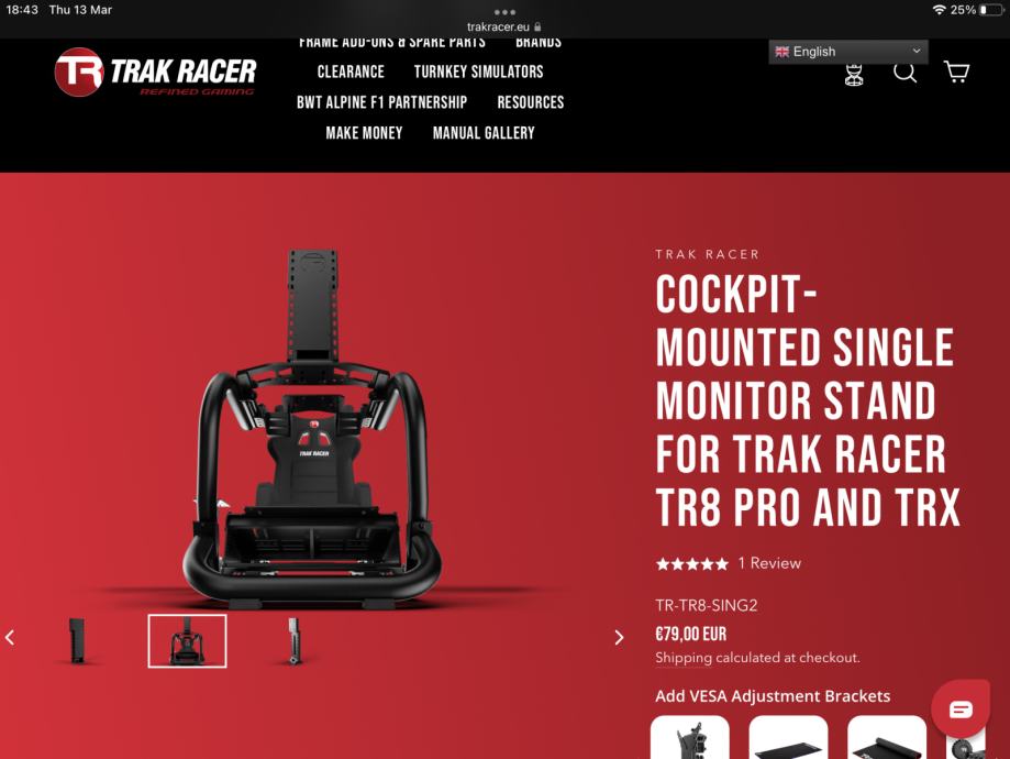 Trak Racer TR8 Pro and TRX Integrated Single Monitor Stand