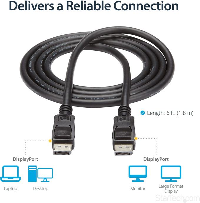LIFETIME WARRANTY: Constructed of high-quality materials, this Display Port 1.2 cord is backed by StarTech.com’s lifetime warranty, making it a truly cost-effective solution.