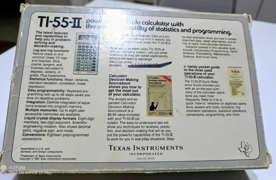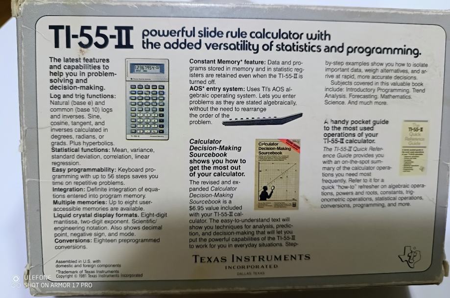 TI -55 II , Texas Instruments, programabilni kalkulator iz 1981 godine