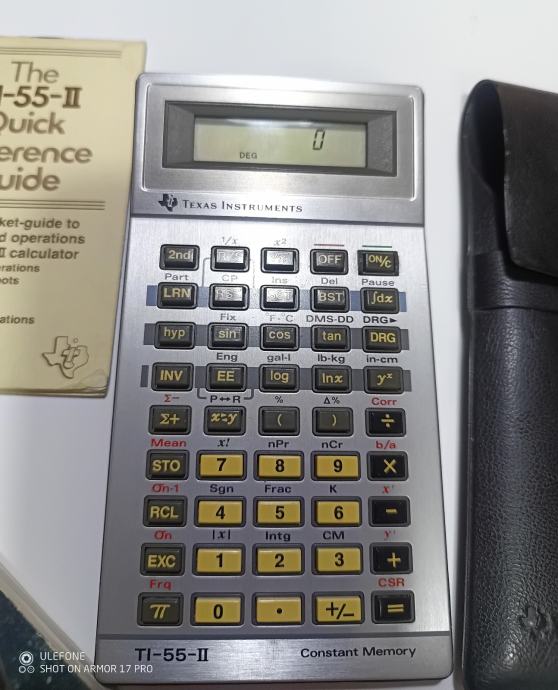 Prodajem znanstveni kalkulator TI-55 II made in USA, u vrhunskom stanju, ispravan, s originalnom crnom futrolom, sa dvije nove baterije, originalnom kutijom, knjigom sa detaljnim uputama i malom knjižicom brzih uputa.
