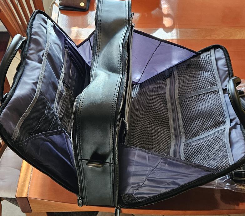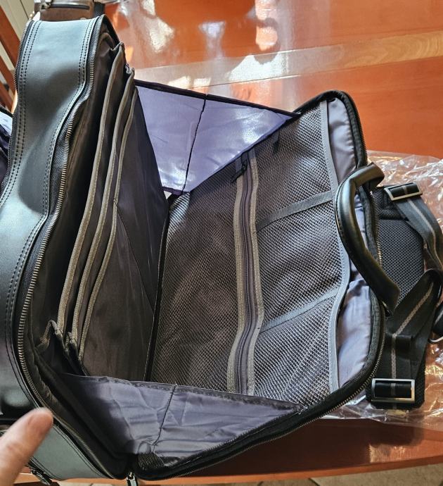 Torba za prijenosna računala do 17" izrađena od kože. Torba sadrži podstavljeni pretinac za notebook te dodatne pretince za sitnice i dokumente. Uz torbu dolazi i remen za nošenje na ramenu.