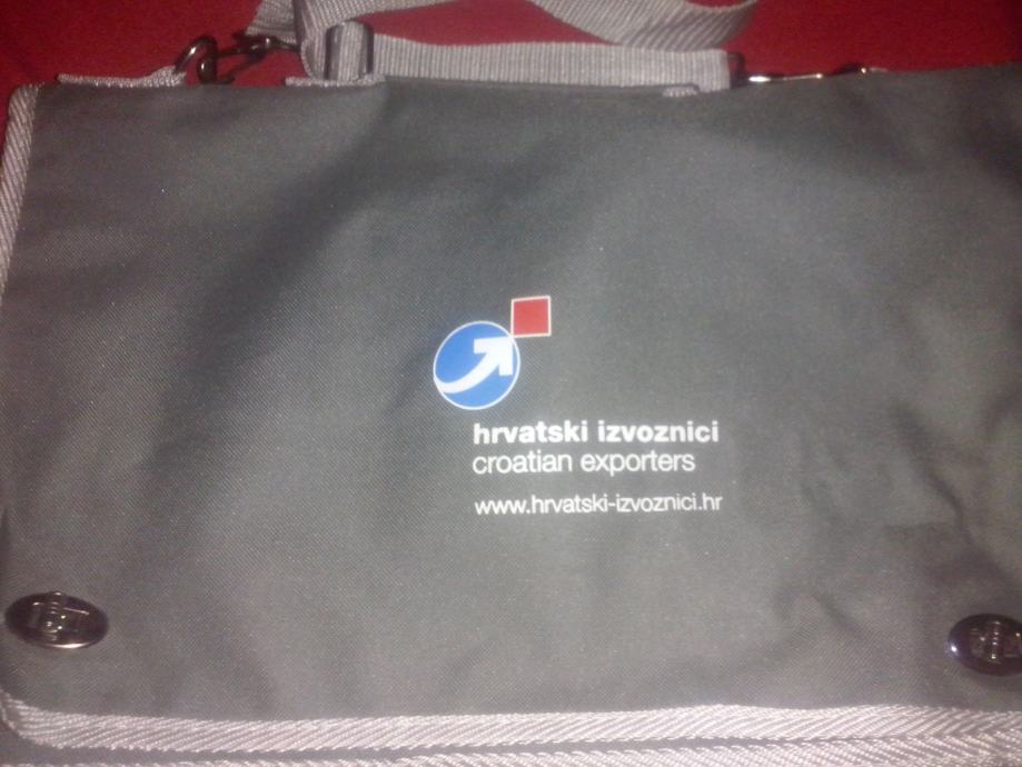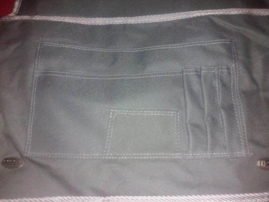 Torba za laptop, nova, nekorištena.Dimenzije cca 40 x 25 cm. Remen se može skinuti. Uz pretinac za laptop ima 3 pretinca (najveći 26x15 cm) i 3 utora za olovke.
