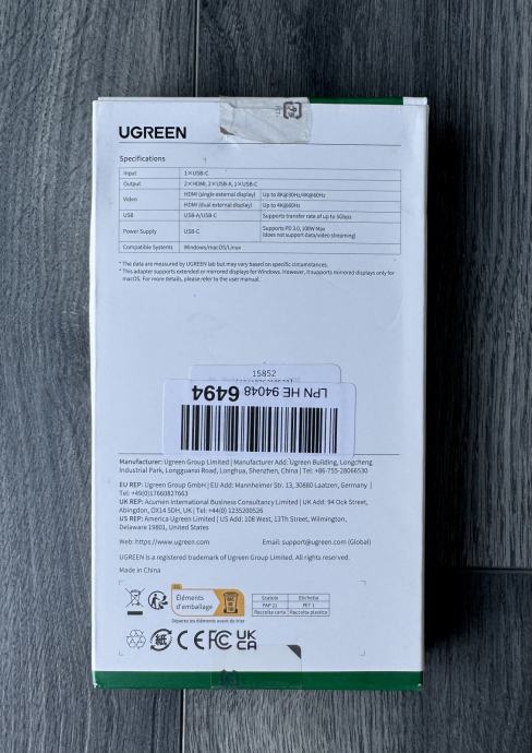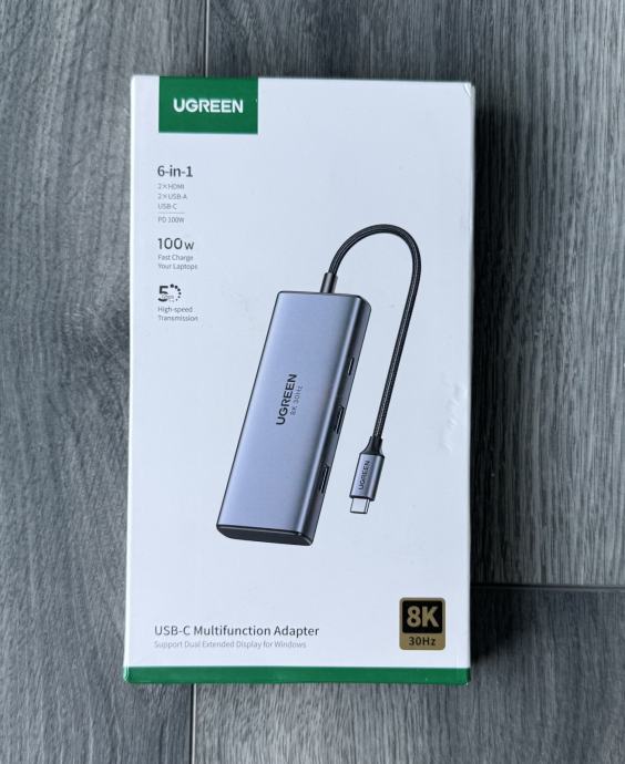 - 6 u 1 priključak: 2x HDMI, 1x USB-C PD (100W), 1x USB-C data, 2x USB-A data