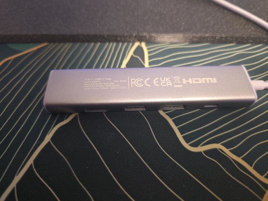 Prodajem rabljeni Ugreen USB hub u ljubičasto-sivoj boji s USB-C priključkom. Radi se o 5-in-1 USB-C hubu koji uključuje HDMI izlaz, USB-A priključke te USB-C port.