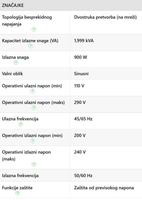 Dvostruka pretvorba (na mreži) 1,999 kVA 900 W 6 utičnice naizmjenične struje.