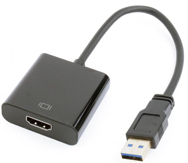 Gembird USB to HDMI display adapter, black - USB 3.0 to HDMI video adapter cable. Supports resolutions up to 1920 x 1080 @ 60 Hz. Allows to easily mirror or extend your computers display workspace. USB powered, no external power source needed. Built-in driver
