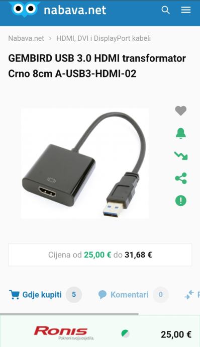 Idealno rješenje ukoliko Vam je HDMI utor na laptopu neispravan ili ukoliko trebate drugi izlaz za dodatni monitor/TV. Instalacija je vrlo jednostavna, a driveri se nalaze na uređaju.