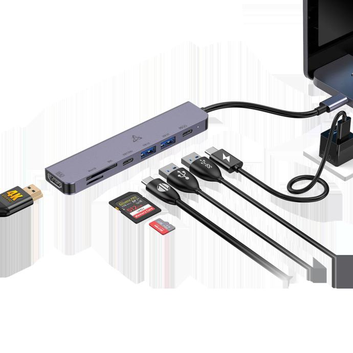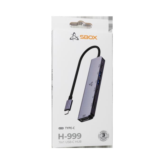 USB hub SBOX H-999 7u1 USB-C - USB-C HUB SBOX H-999 7u1 omogućuje povezivanje HDMI zaslona, USB uređaja, LAN mreže, SD/microSD kartica i punjenje putem USB-C PD porta. Kompaktan i pouzdan dodatak za laptopove, tablete i mobitele s USB-C priključkom.