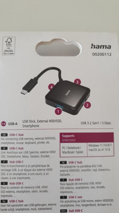 USB-HUB - USB-C - 4x USB-A - 4 porta NOVO!