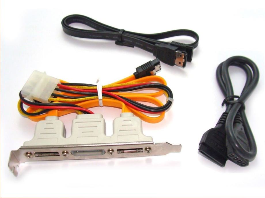 The eSATA Kit includes 2x eSATA Ports and 4-pin Power Port PC Case Slot Bracket, eSATA to SATA Data Cable, 4-pin Power to SATA Power Cable. With this eSATA kit you can easily connect any external storage device, network attached system (NAS), to your PC.*