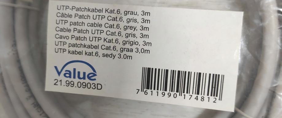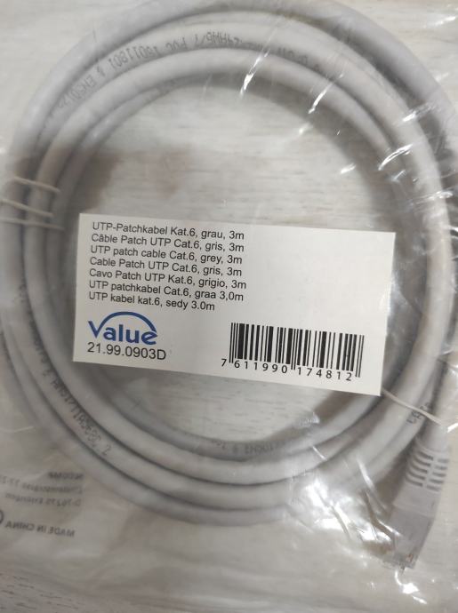 UTP kabel kat.6 , sedy 3.0 m***NIJE KORIŠTENO***