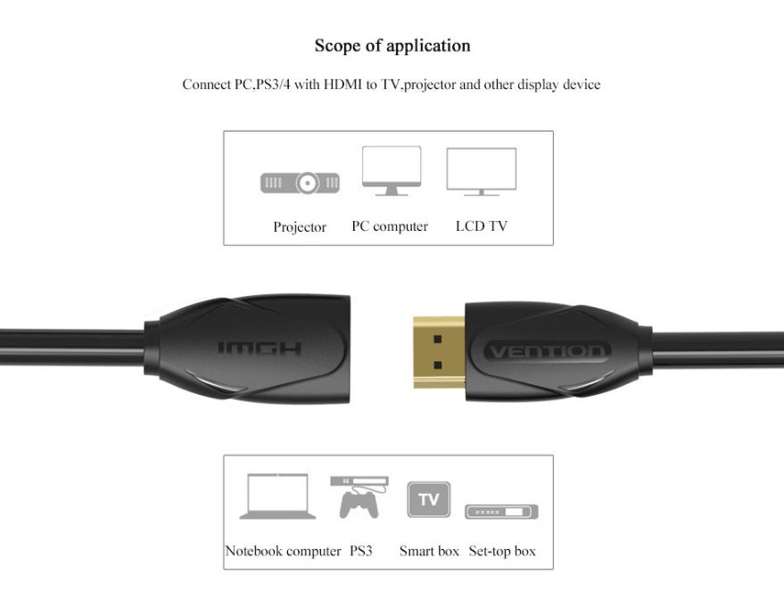Vention brzi HDMI ektenzioni kabel, muško/ženski, podržava 3D