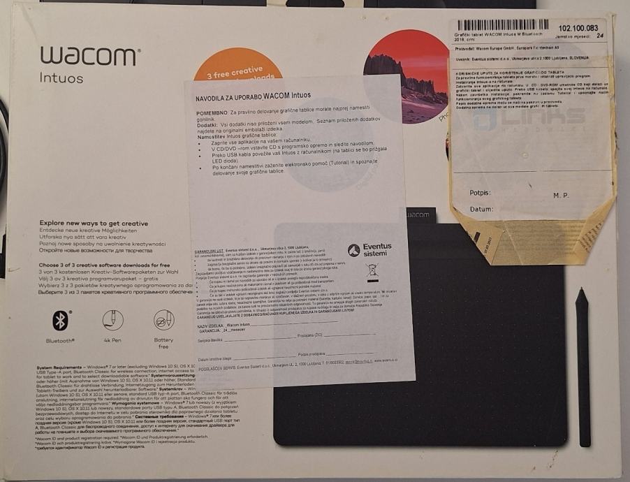 Olovka: Wacom Pen 4K (LP-1100K), radi bez baterije, ima 3 dodatna nekorištena vrška u olovci, brzina čitanja olovke: 133 pps