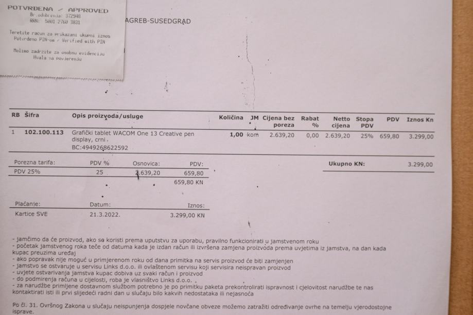 Prodajem gotovo nekorišteni grafički tablet WACOM One 13. Svi kablovi, olovka i pribor u orginalnom pakiranju.