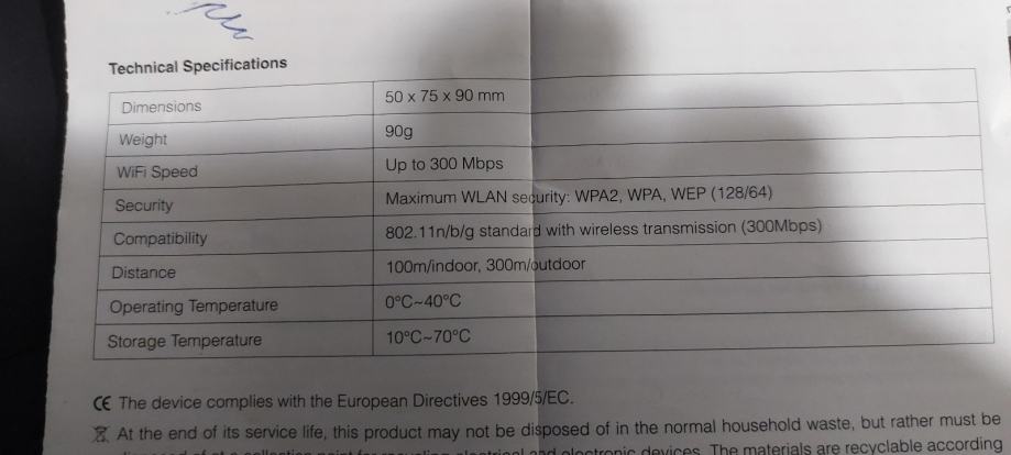 WIFI Booster, nekorišteno, 300 Mbit/s 2.4 GHz, WiFi Extender Booster sa Repeater/AP Modus i WPS-Funkcije, do 3000 qm + Ethernet kabel.