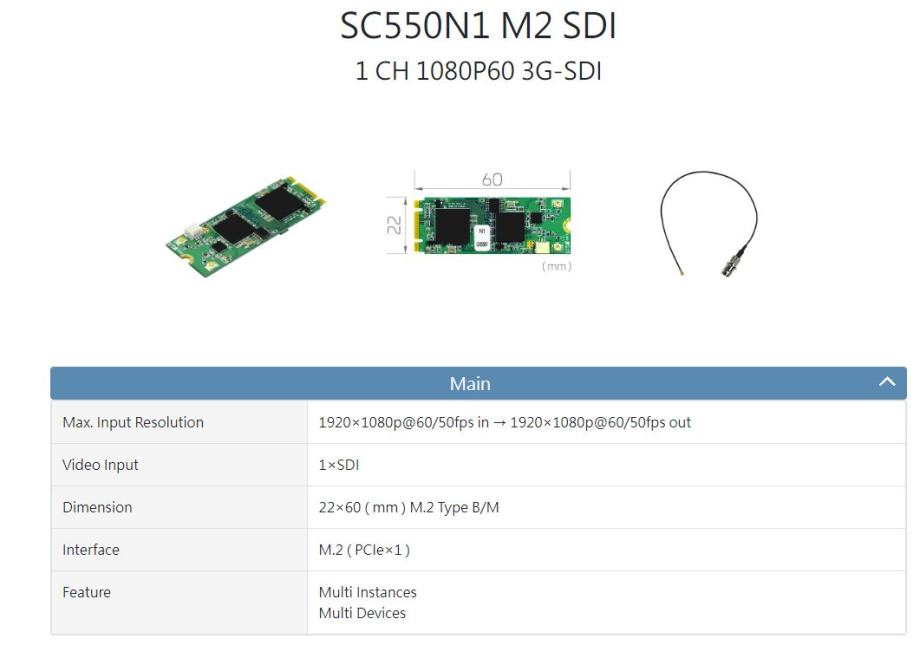 Yuan – SC550N1 M2 SDI – M.2 – HD Capture Solution – 1 Channel SDI 1080