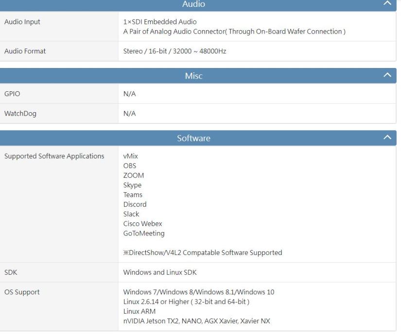 Cam Link (Progressive Video Sources Only) 1x HDMI USB 3.0