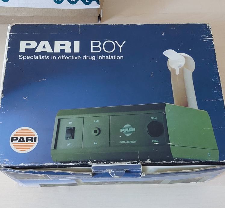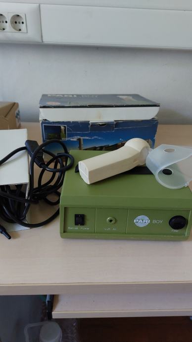 Inhalator s kompresorskom stanicom, porijeklom iz Njemačke. Može se koristiti i samo za upuh zraka. Mogućnost primjene inhalacijskih tekućina i lijekova. Vrlo malo rabljen, vidljivi jedino tragovi na vanjskom ambalaži zbog dugog stajanja. Sve radi ispravno, crijeva i kablovi gotovo novi.