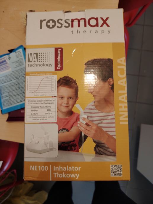 Inhalator, stavlja se mala količina fiziološke i udiše, ima dva nastavka. Cjevčica se zna otet pa treba staviti nešto da je drži jače, da dihta. Inače savršeno radi.