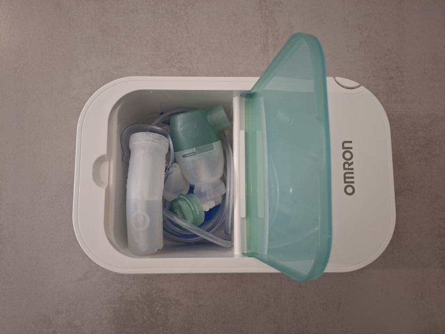 Na setu za inhalaciju se vide tragovi koristenja zbog prokuhavanja pa savjetujemo kupiti zamjenski Omron Duobaby set za inhalaciju (€15,79 na Medikorovoj stranici).
