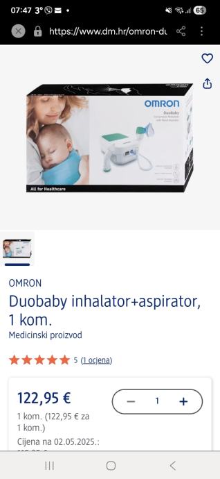OMRON DUOBABY je jedinstveni 2 u 1 kompresorski inhalator s integriranim nosnim aspiratorom koji pomaže u liječenju najčešćih respiratornih smetnji kod djece. Inhalator učinkovito dostavlja lijek ( ili fiziološku otopinu) u gornji i donji dišni sustav, aspirator nježno čisti djetetov nosić, smanjuje začepljenost i omogućuje slobodno disanje