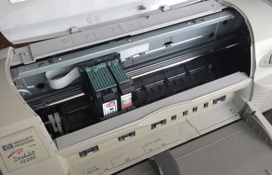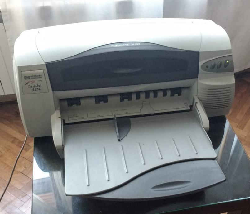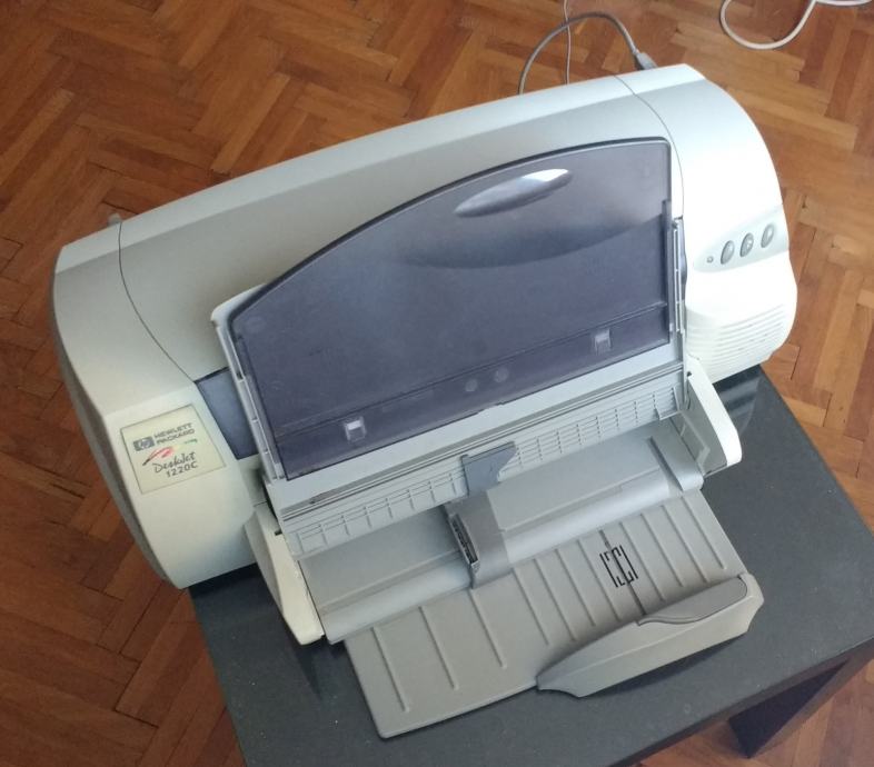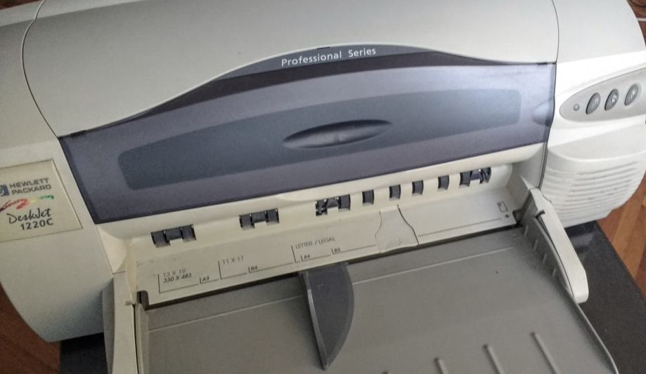 Odličan stari Deskjet 1220c koji printa do A3 (29,7x42cm), trenutno nema tonera, ali radi. Nije korišten neko vrijeme jer nemam više potrebe za A3 printanjem.