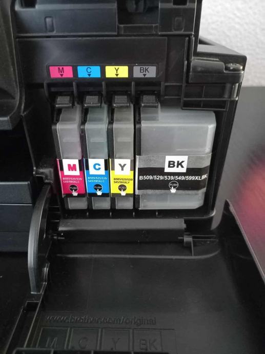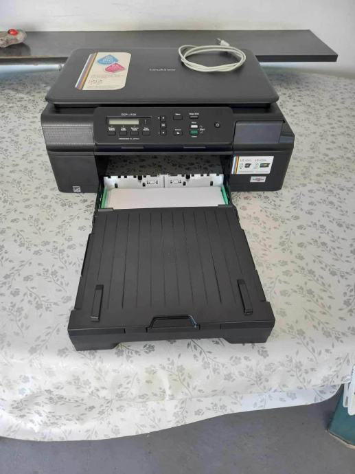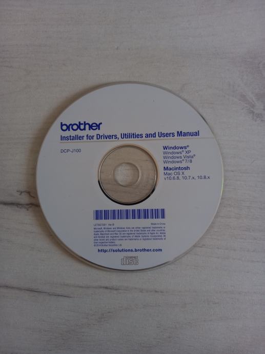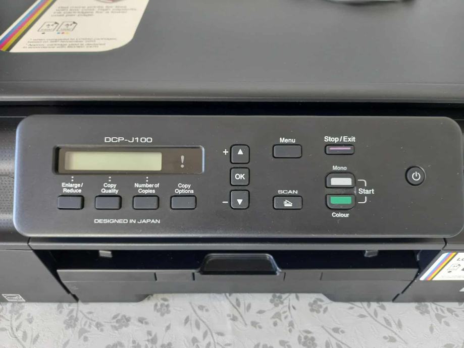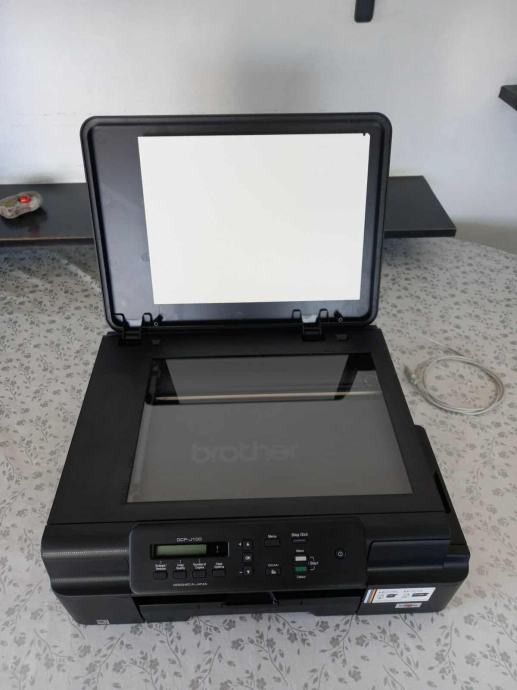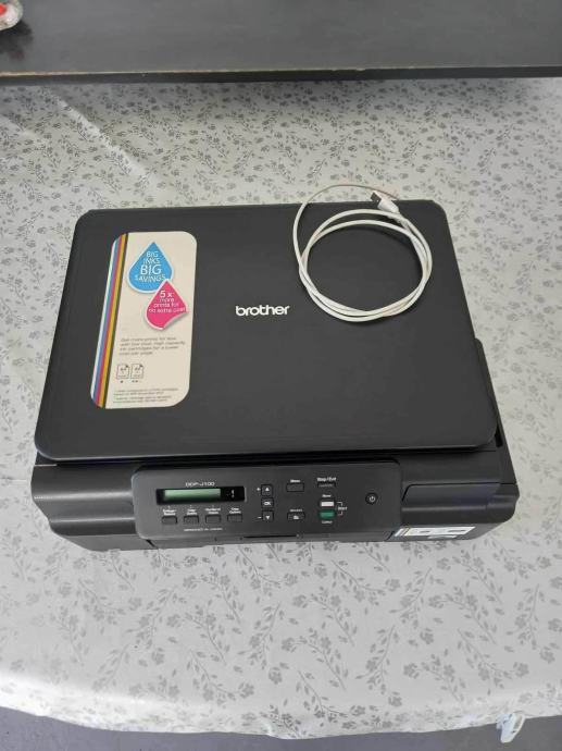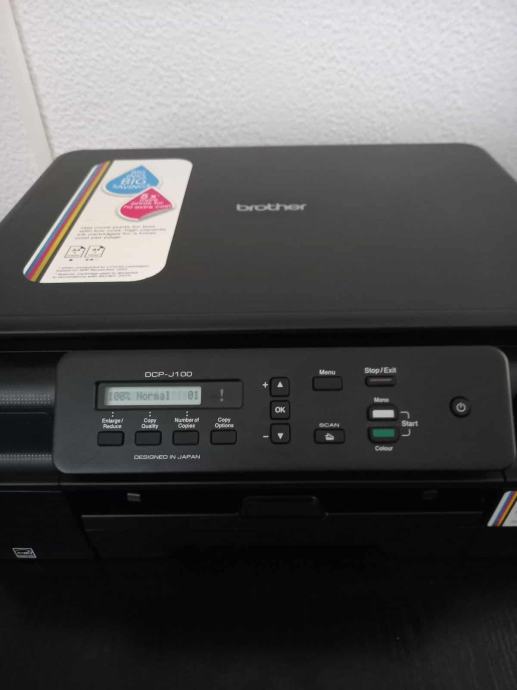 Brother DCP-J100 ima funkcije pisača, skenera i fotokopirnog stroja. Sa crnom tintom ispisuje do 2400 stranica teksta do ponovnog punjenja. Ima LCD ekran za mnoge funkcije ispisa i održavanja bez uporabe računala. Windows 7 (koji je radio preko mog računala) i 10 ga automatski prepoznaju, ali ima i dodatne instalacijske programe od Windows XP.
