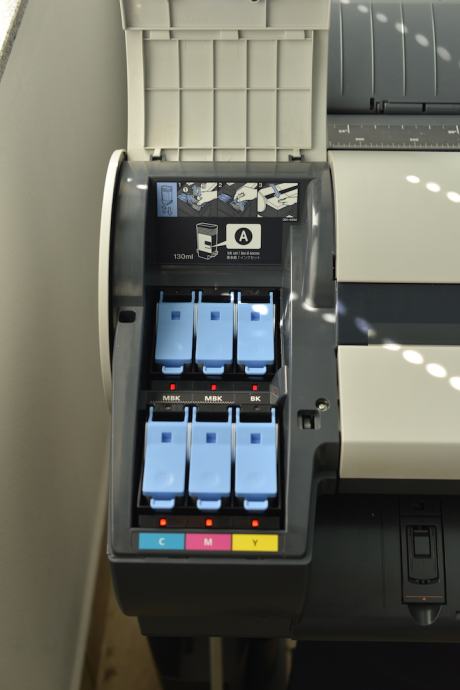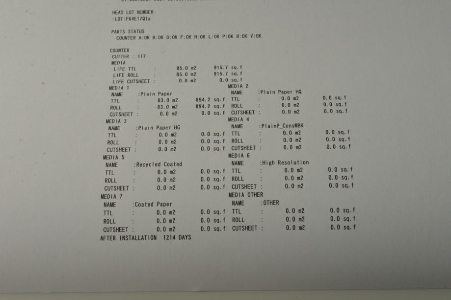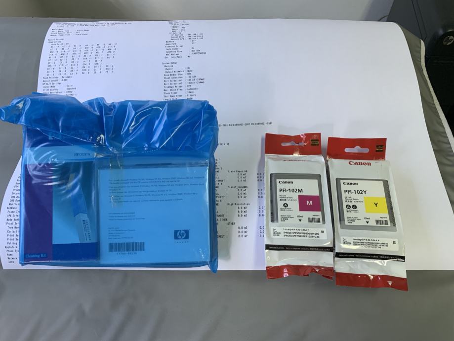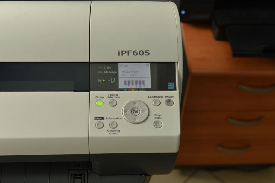 Ploter je u odličnom stanju. Kupljen je prije nekoliko godina ali je vrlo malo korišten. Isprintao je ukupno 85 m2. Radi i izgleda kao nov. Sve tinte su prave (a ne probne malog kapaciteta koje se standardno isporučuju sa novim ploterom) i skoro posve pune. Dodatno dajem dvije nove tinte: žuti i magenta.