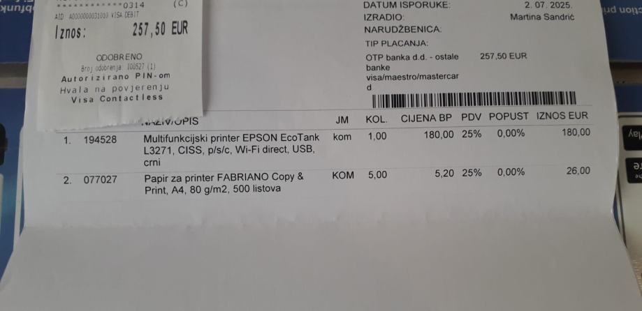 Prodaje se printer,kupljen u 7 misecu ove godine,isprintano na njemu svega 500 listova.
