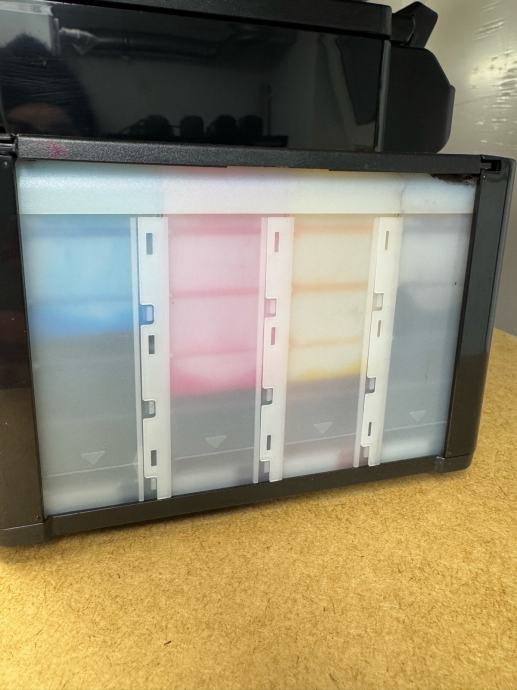 Printer radi normalno, jedino ostavlja neke crtice po papiru pa vjerojatno treba ciscenje mlaznica, slika ispisa je u opisu