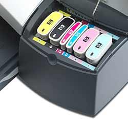 The HP Designet 90 Printer operates a 6-ink writing system which uses colour layering technology coupled with proprietary dye-based HP Vivera Inks to create smooth and continuous tones, excellent highlights, shadow detail and persuasive skin tones in a wide colour range.