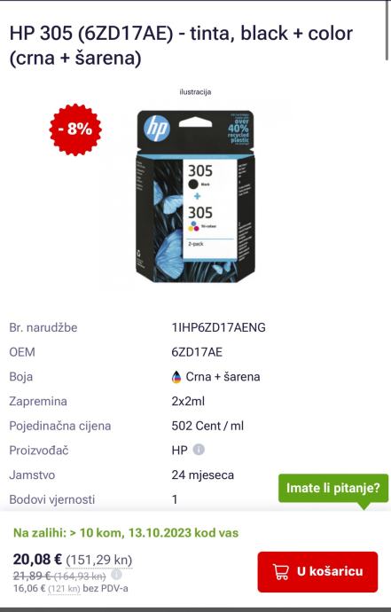 BEZ BOJA, potrebno kupiti tonere (crna +boje 20€)