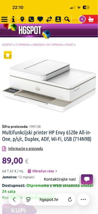 Prodajem potpuno novi HP Envy 6520e All-in-One printer, idealan za kućnu upotrebu. Uređaj je multifunkcionalan s mogućnostima printanja, skeniranja i kopiranja dokumenata. Kupljen jučer (5.11.2025.) Isproban zbog provjere ispravnosti uređaja. Dolazi u originalnom pakiranju sa svim pripadajućim dijelovima.