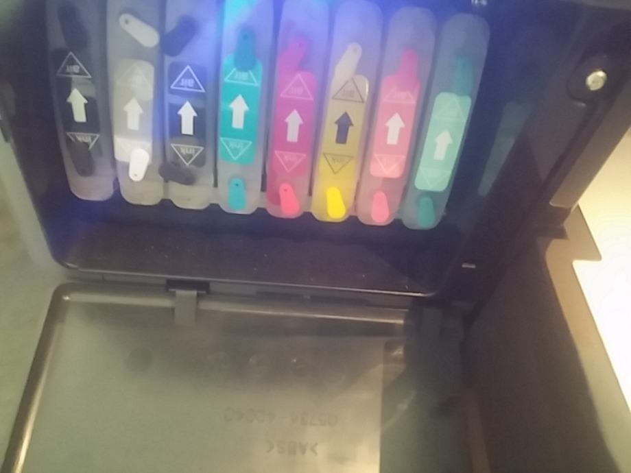 Ovo je jedan od rijetkih foto pisača koji mogu tu debljinu media printati ( 1,5mm). Također se na ovaj pisač može jeftino ugraditi Ciss kao na slici ali i punjive kazete za boju kje dolaze sa pisačem su dobra stvar da se ne moraju kupovati tinte. Boje u rifuzi dostupne na Ebay jako povoljno. POGLEDAJTE VIDEO kako se ciss ugrađuje, vrlo jednostavno.