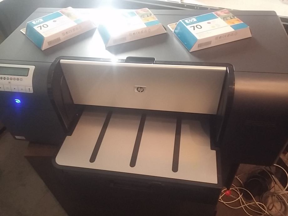Printa na sve vrste papira i kartona do nevjerojatih 1,5mm debljine pa i više, također printa na platno i slične materijale. Boje su vodootporne postojane na svetlost, ne blijede. Glave su oznake 70 ima ih 4.
