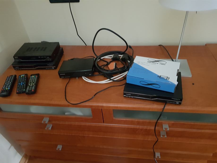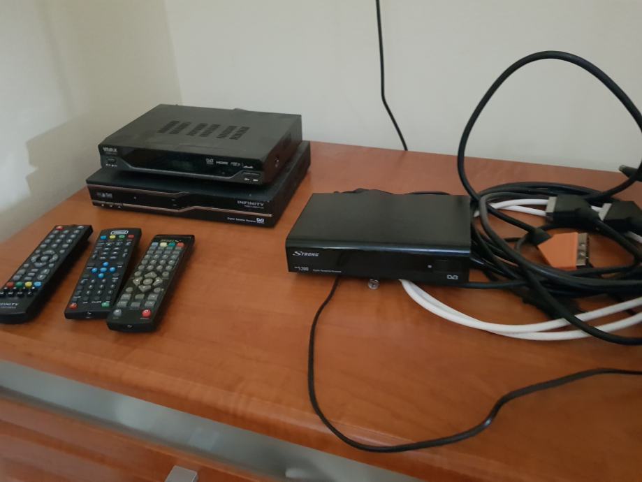 4 DEKODERA I RECIVERA ZA SATELITSKU I ZEMALJSKU TV.-KOMPLETNI SA SVIM KABLOVIMA + KUCNA TV