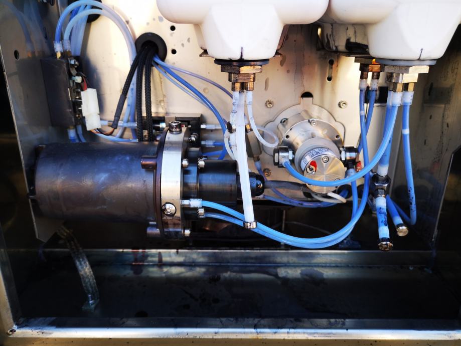 Kućište pisača i ispisne glave su od inoxa. Pisači su samostojeći ili se mogu postaviti na stol. Sustav od dvije ispisne glave sa automatiziranim ispiranjem dizne i tintnog kruga protiv zasušivanja tinte.