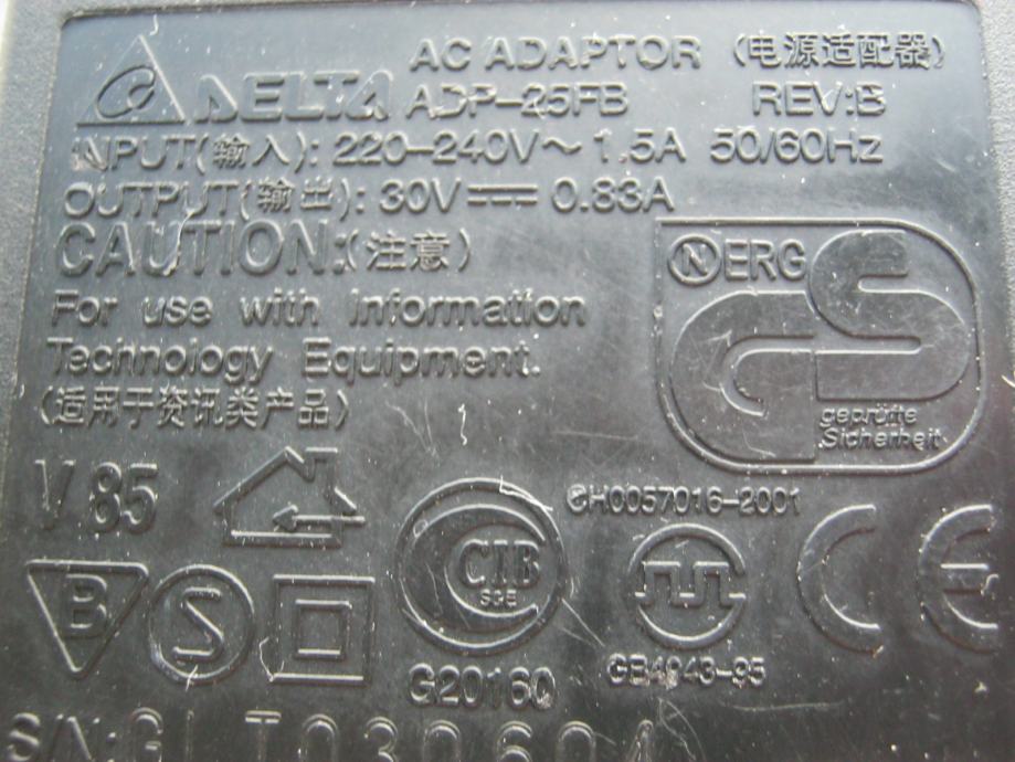 Delta Electronics Adp-25fb 30v AC Adapter Power Supply for Dell A940 Lexmark Z65.