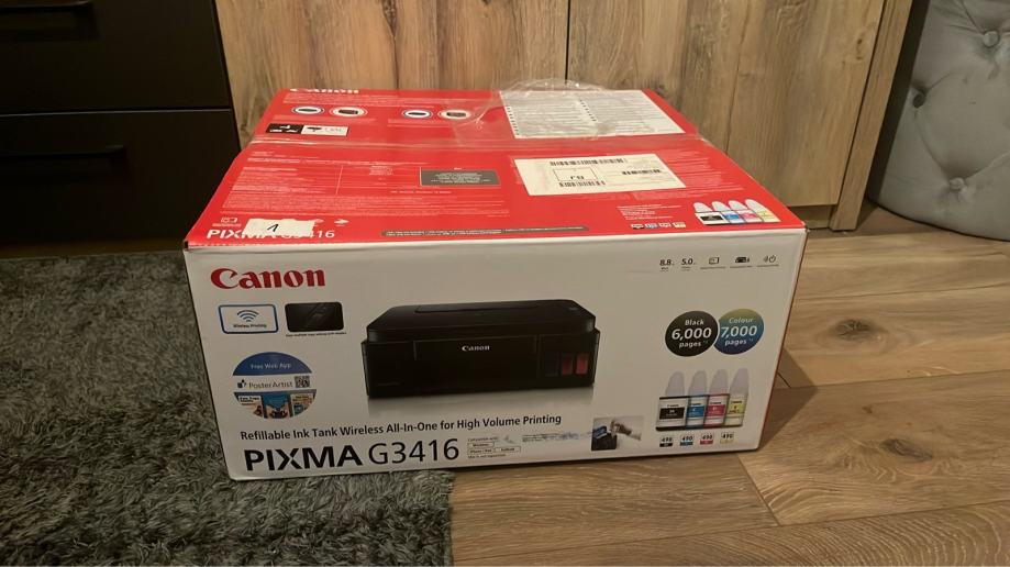 Prodajem potpuno novi pisač Canon Pixma G3416 A4 s CISS sustavom za ispis. Pisač podržava bežično povezivanje putem WiFi-ja i USB-a za jednostavnu upotrebu. Uređaj je idealan za kućni ured s mogućnošću velikog volumena ispisa uz niske troškove. Besplatna dostava za Bjelovar!