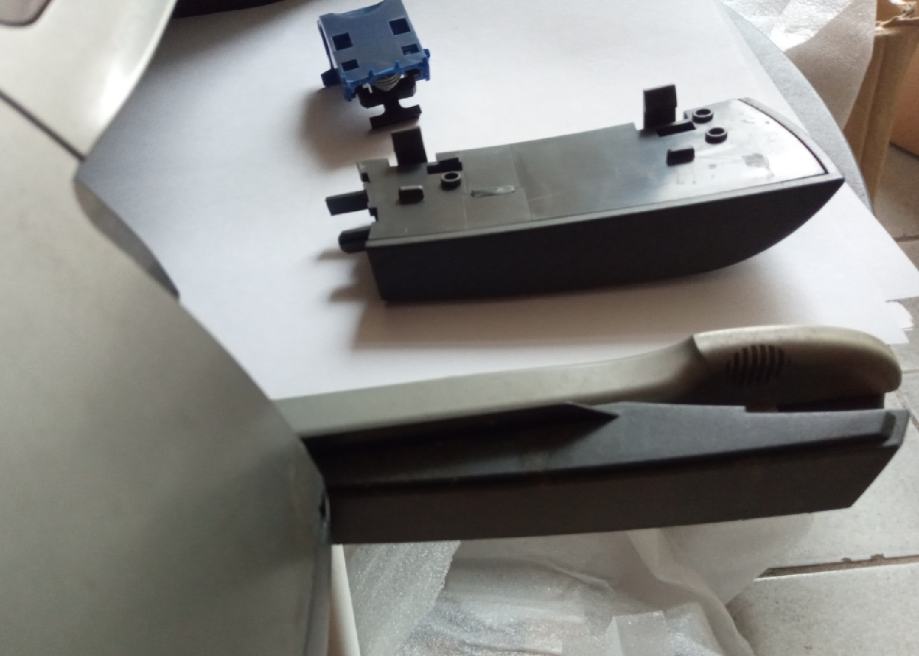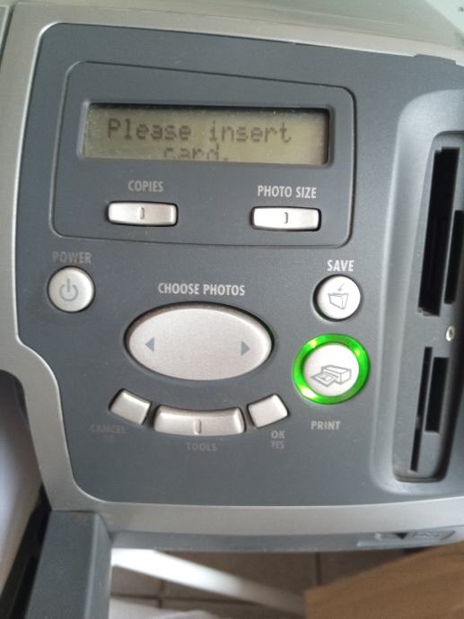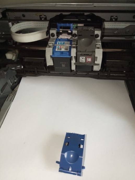 Printer je ispravan inače i ima boje, no pukla je plastika koja drži kolor cartridge, printa samo grayscale. Osim toga pukla je bočna plastika pored vodilice papira - ne utječe na rad, sve navedeno vidljivo na fotkama.