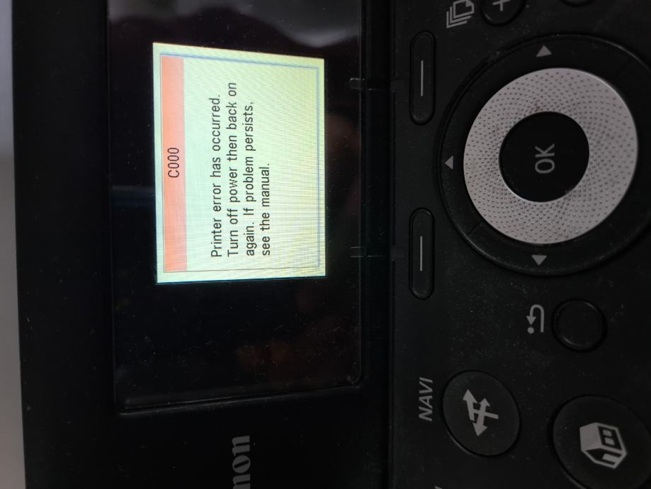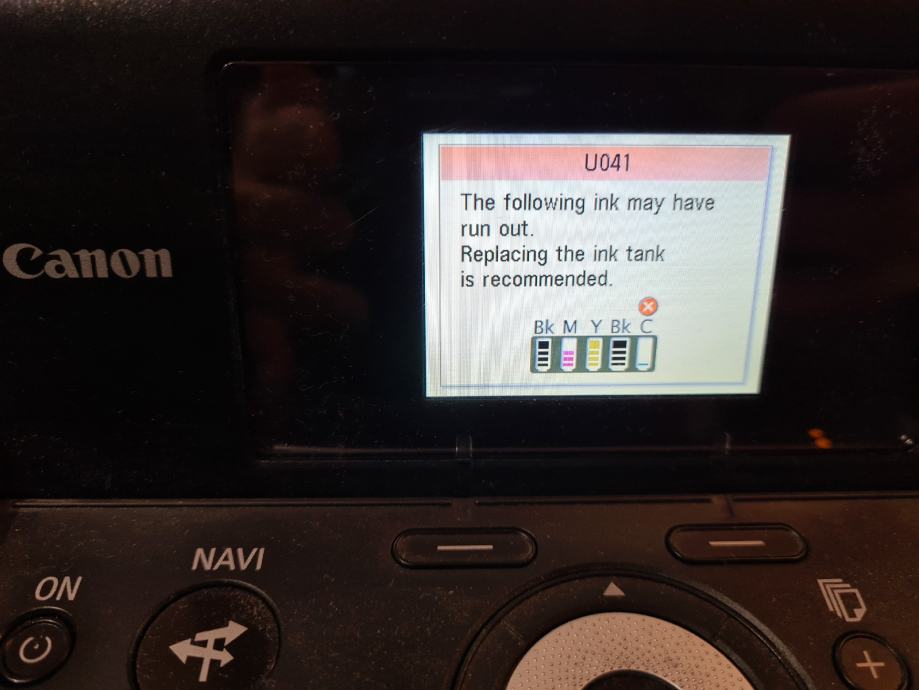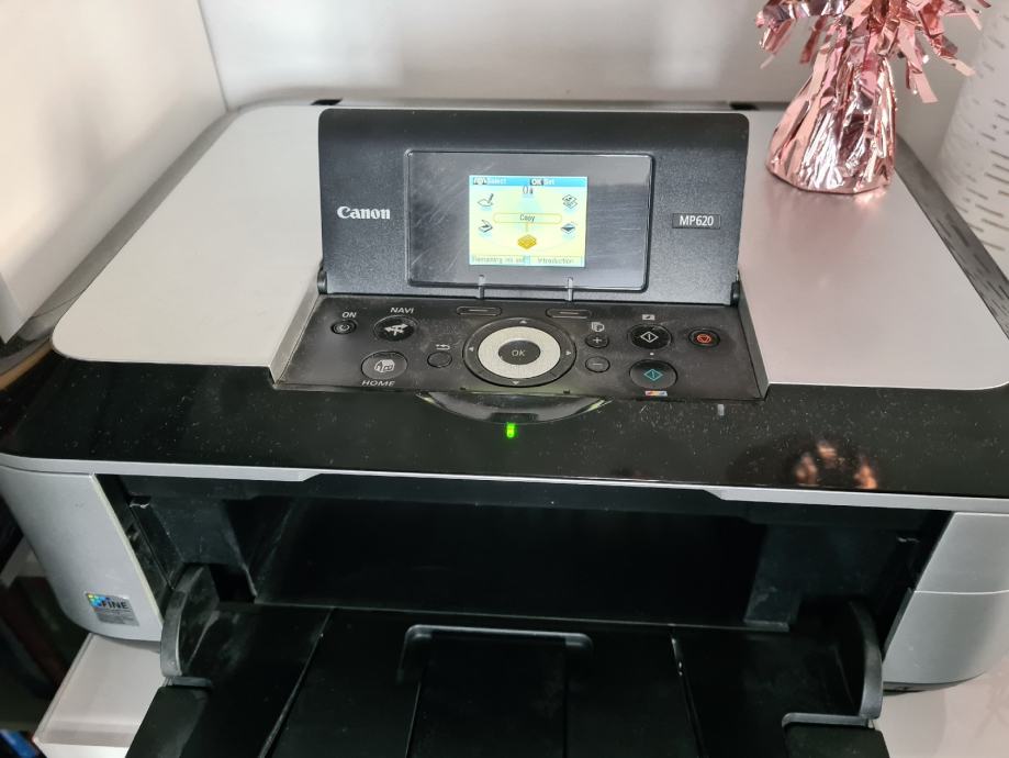 Printer CANON MP620, javlja grešku vidljivo na 4 slici. 1 stranicu isprinta, pa 3 puta neće, pa opet 3 puta printa...možda netko zna što je greška. Stanje boja/tinte je na zadnjoj slici.