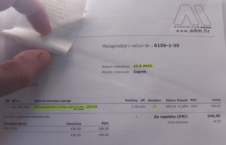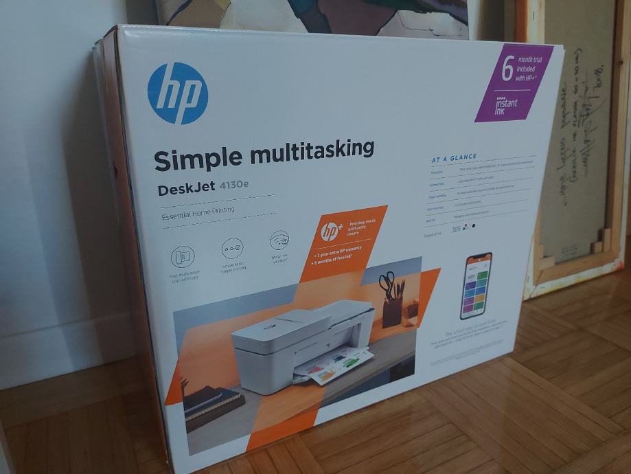 HP Printer model 4130e, multifunkcionalan (printer, skener), moguće žično i bežično spajanje, star oko godinu dana (račun u prilogu). Printer je praktično nov, vrlo malo korišten, u besprijekornom stanju, originalna ambalaža, prodajem u pola cijene. Koristi originalne tinte 305 (foto u prilogu).