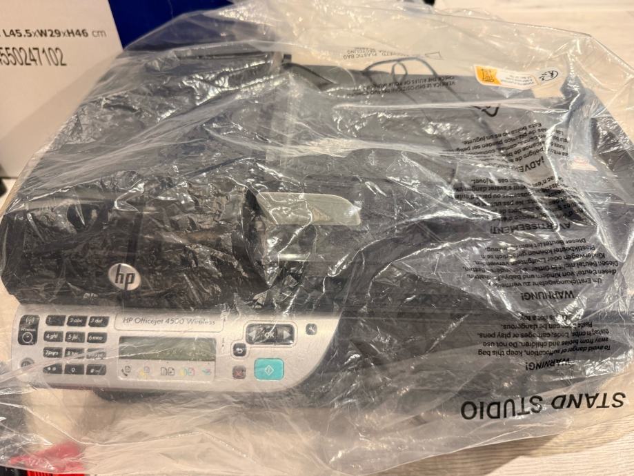 Prodajem rabljeni HP Officejet 4500 multifunkcijski tintni pisač. Radi se o all-in-one uređaju koji kombinira funkcije pisača, skenera, kopirnog uređaja i faksa. Uređaj ima ugrađenu numeričku tipkovnicu te podržava bežično povezivanje.
