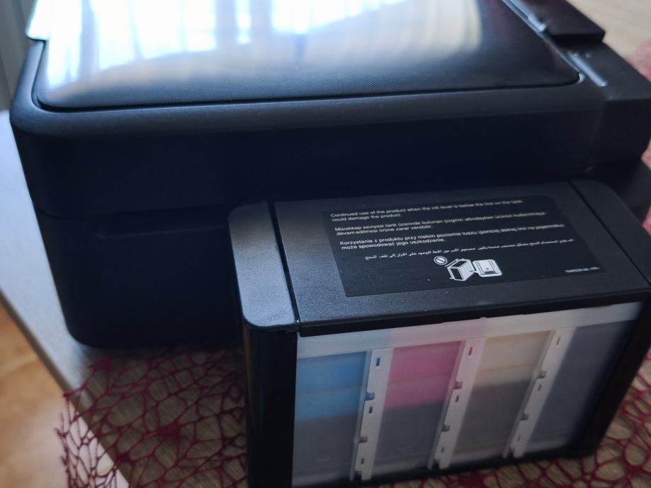 Odličan color pisač s skenerom,najjeftiniji ispis na tržištu,s punim spremnicima kapacitet ispisa cca 3000 stranica,svaka od 4 bočice za punjenje cca 9eura,super za ispis fotografija na foto papir