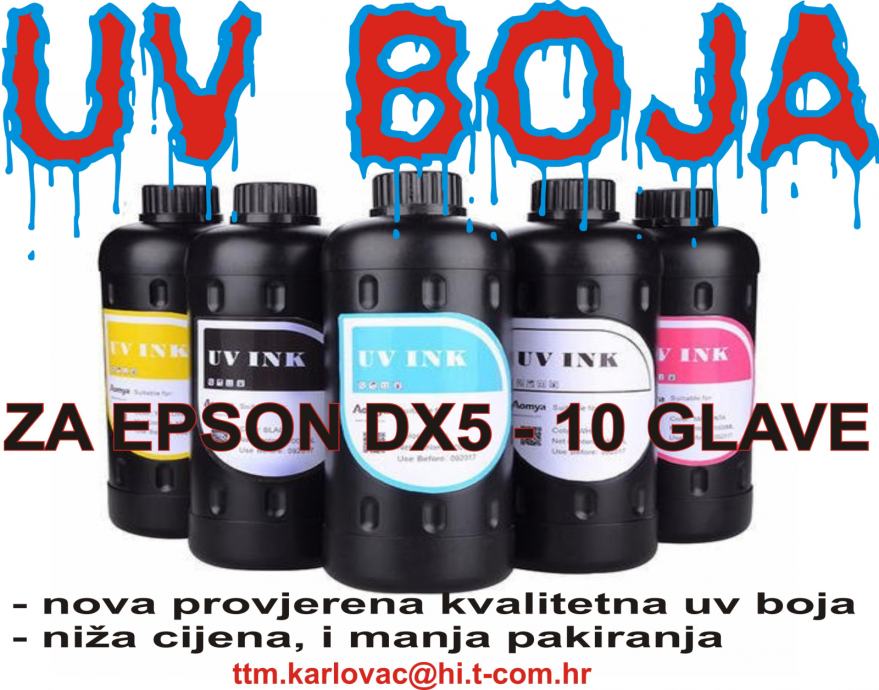 Nove boje za Epson printere DX 5 - 10 glave, provjerene kvalitete, i u manjim pakiranjima.